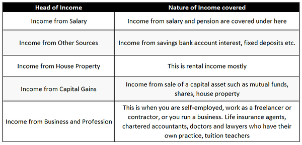 Everyone who earns or gets an income in India is subject to income tax. Your income could be salary, pension or could be from a savings account that’s quietly accumulating an interest, Renting of House Properties, Gain on Sale of Capital Assets, Business Income or Loss, Other Incomes.